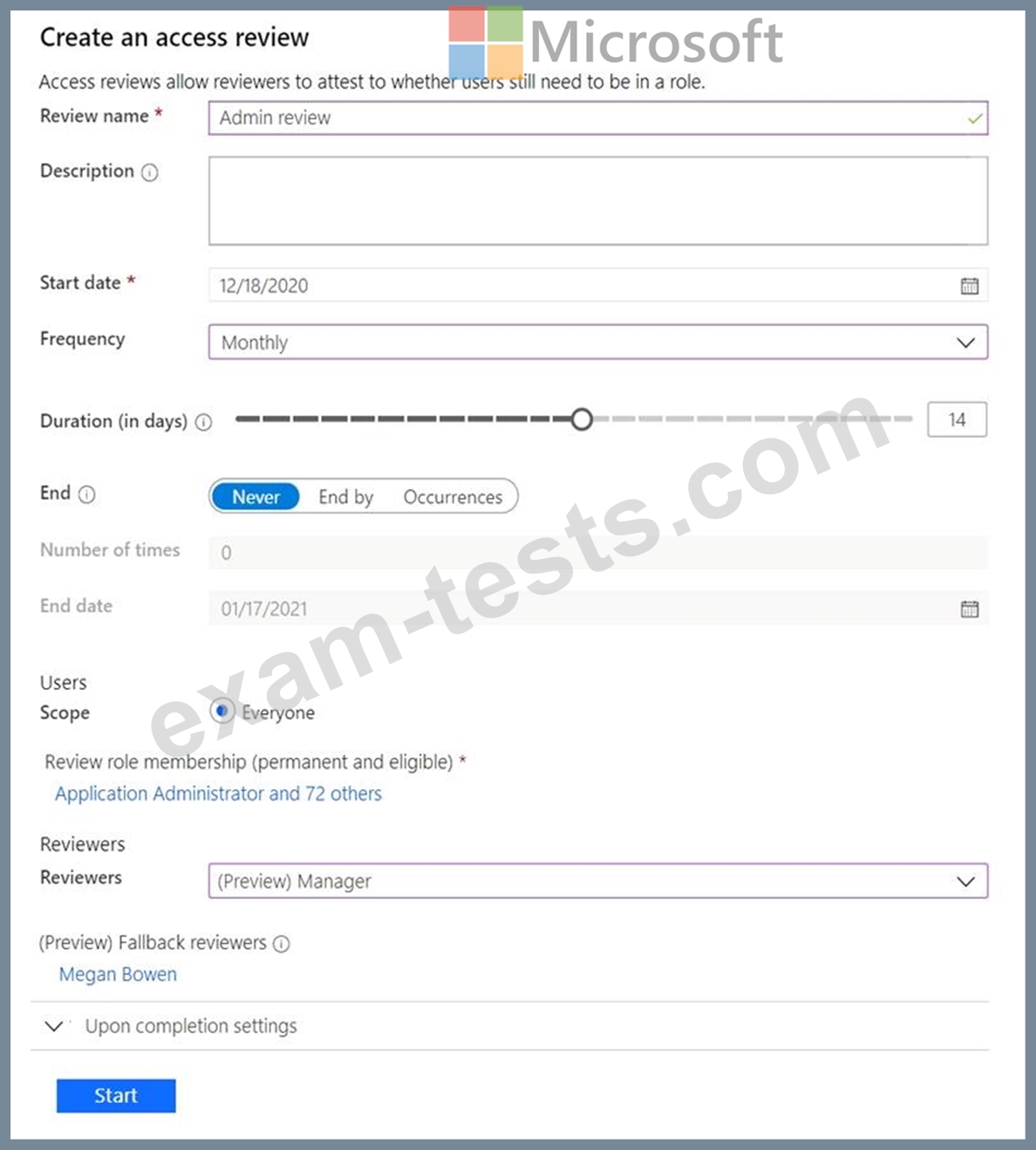 You create the access review shown in the exhibit. (Click the Exhibit tab.)