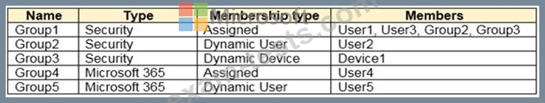 You have an Azure Active Directory (Azure AD) tenant that contains the following objects: