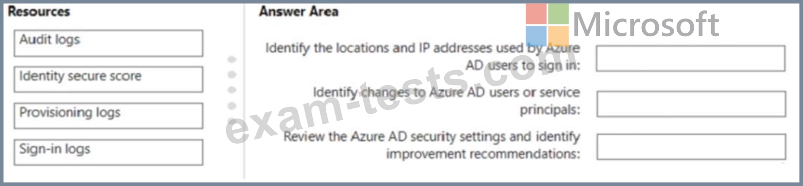 What should you use for each task? To answer, drag the appropriate resources to the correct requirements. Each resource may be used once, more than once, or not at all. You may need to drag the split bar between panes or scroll to view content.