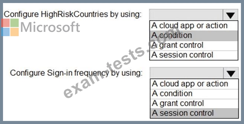 What should you configure in a conditional access policy? To answer, select the appropriate options in the answer area.