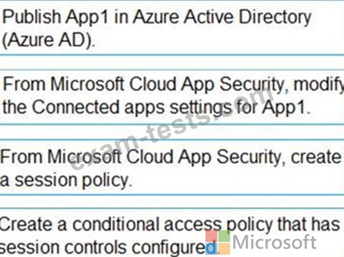 You need to enable real-time session-level monitoring of App1 by using Microsoft Cloud app Security.