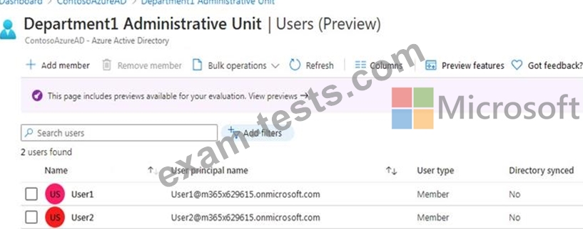 You have an Azure Active Directory (Azure AD) tenant that contains an administrative unit named Department1.