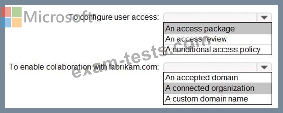 - Configure an access review for an access package named Package1.