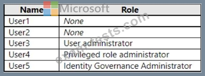 You have a Microsoft Entra tenant that contains the users shown in the following table.