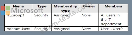 A Datum has a Microsoft 365 E5 subscription. The subscription contains a verified domain that syncs with the adatum.com AD DS domain by using Azure AD Connect A. Datum has an Azure Active Directory (Azure AD) tenant named adatum.com. The tenant has Security defaults disabled.