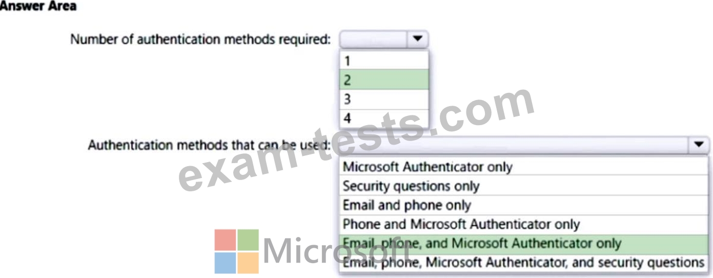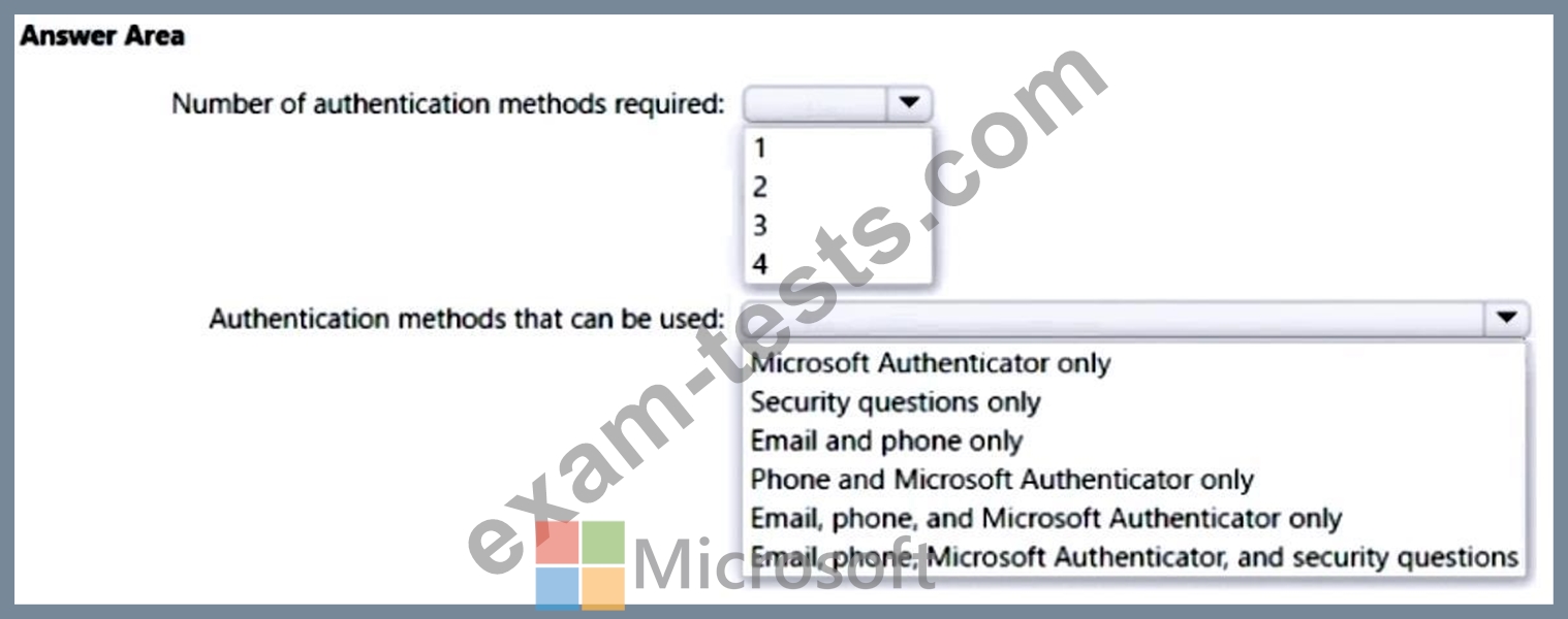 - Users must provide one authentication method to reset their password by using SSPR.