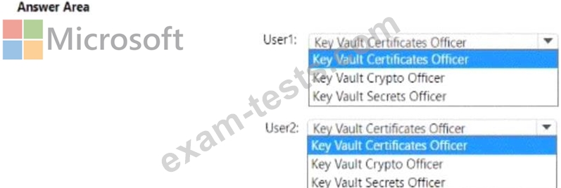 Which role should you assign to each user? To answer select the appropriate options in the answer area.