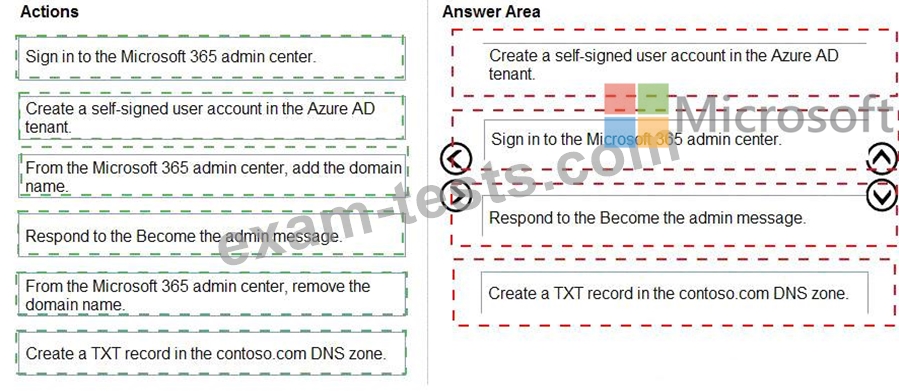 Which four actions should you perform in sequence? To answer, move the appropriate actions from the list of actions to the answer area and arrange them in the correct order.