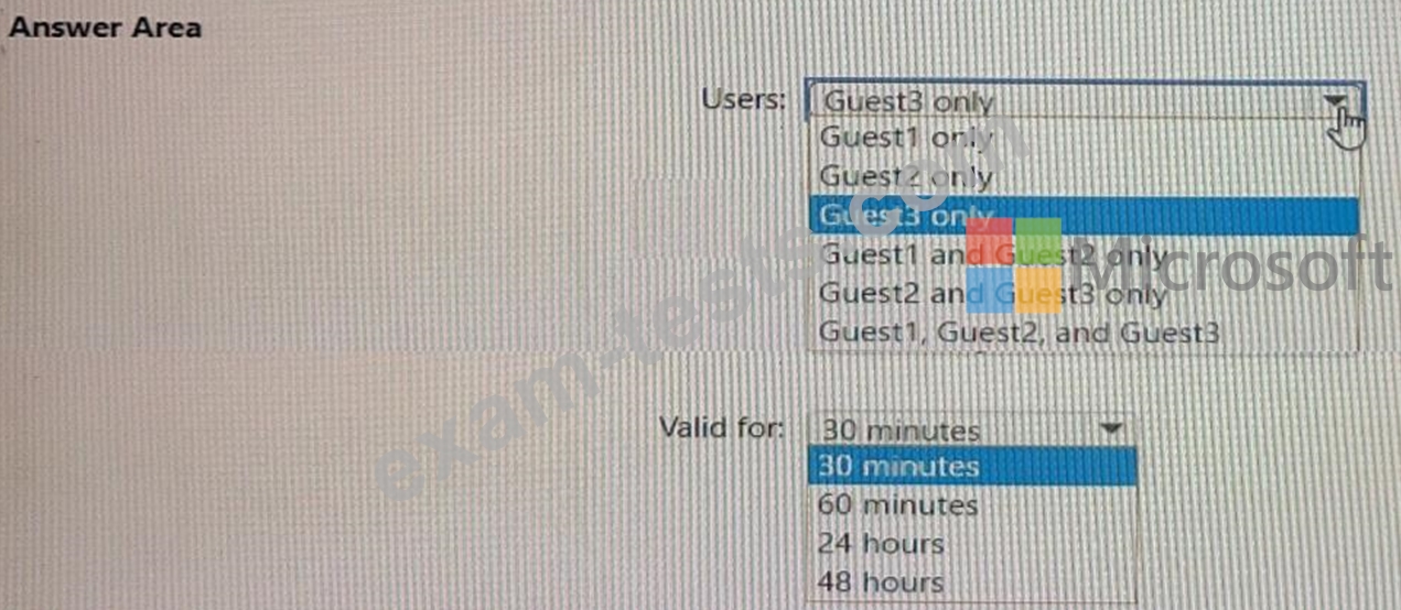 Which users will receive a one-time passcode, and how long will the passcode be valid? To answer, select the appropriate options in the answer area.