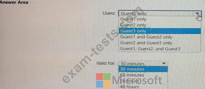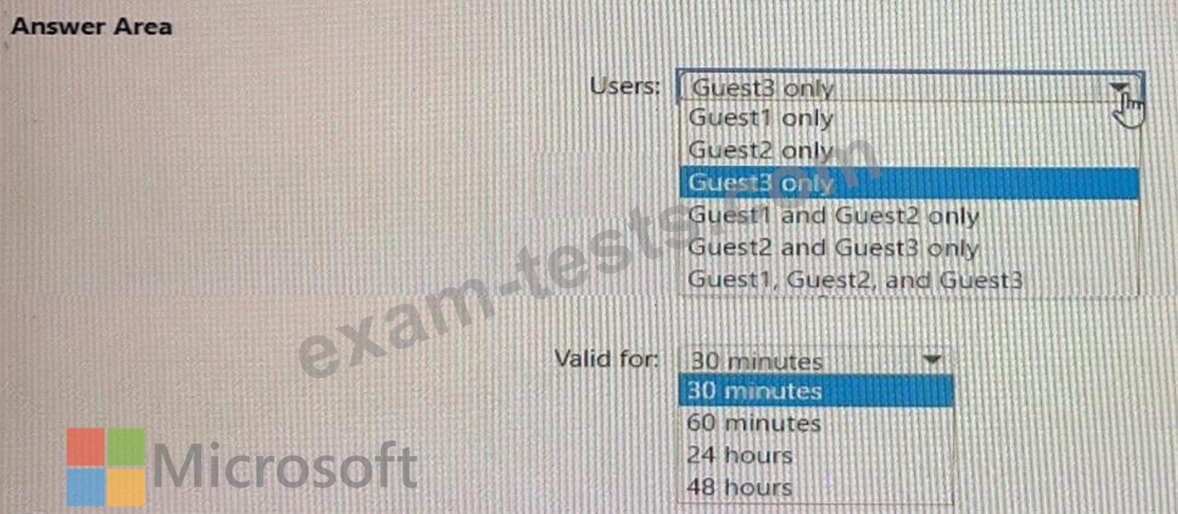 Which users will receive a one-time passcode, and how long will the passcode be valid? To answer, select the appropriate options in the answer area.
