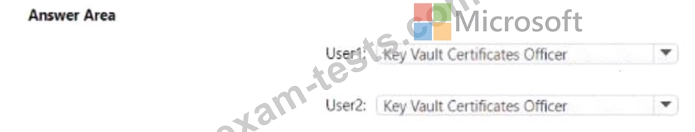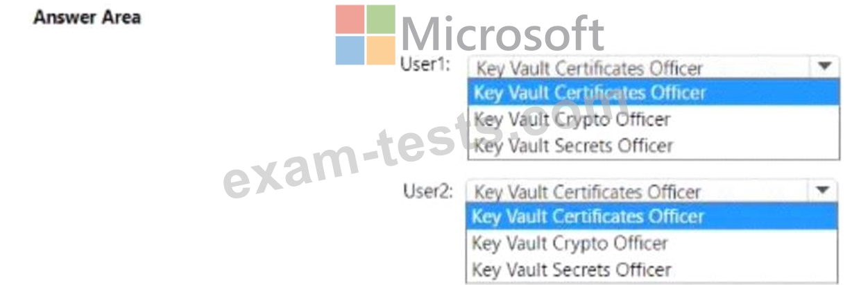 Which role should you assign to each user? To answer select the appropriate options in the answer area.