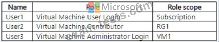 You have an Azure subscription that contains a resource group named RG1. RG1 contains two virtual machines named VM1 and VM2 that have Microsoft Entra ID login enabled.