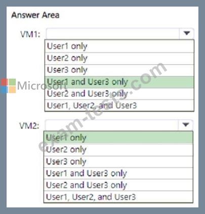 Which users can sign in to VM1, and which users can sign in to VM2? To answer, select the appropriate options in the answer area.