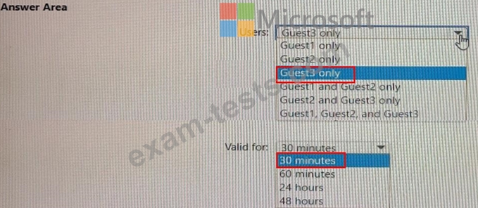 Which users will receive a one-time passcode, and how long will the passcode be valid? To answer, select the appropriate options in the answer area.