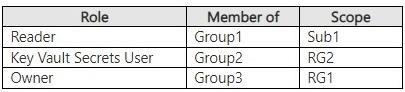 You have an Azure subscription named Sub1 that contains two resource groups named RG1 and RG2. Sub1 contains the users shown in the following table.