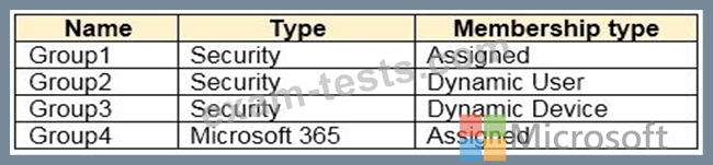 In the tenant, you create the groups shown in the following table.