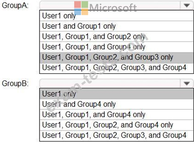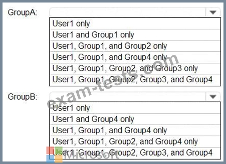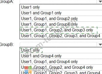 Which members can you add to GroupA and GroupB? To answer, select the appropriate options in the answer area.