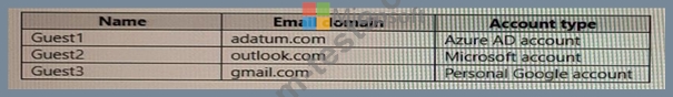 You invite the guest users shown in the following table.