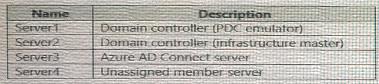 The Active Directory domain contains the on-premises servers shown in the following table.
