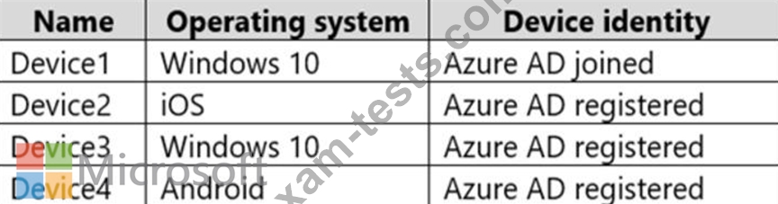 User1 has the devices shown in the following table.