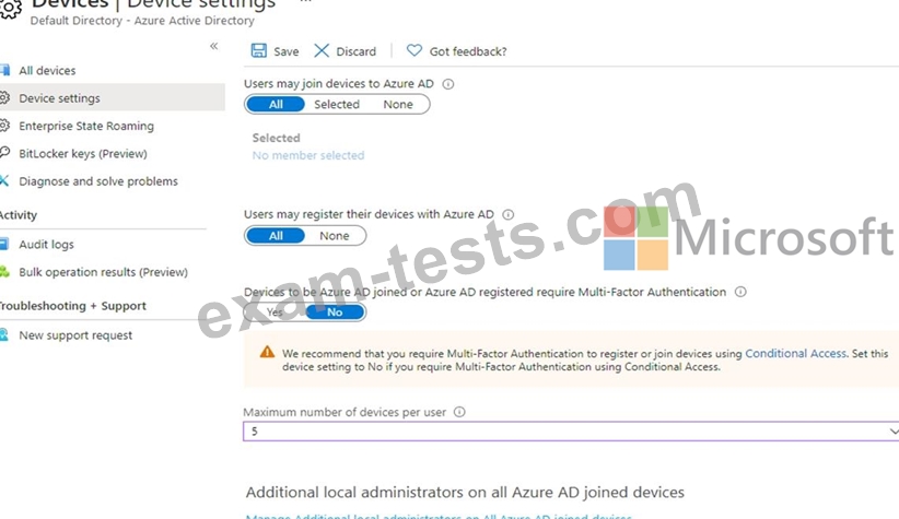 You have an Azure Active Directory (Azure AD) tenant that syncs to the Active Directory forest. Multi-factor authentication (MFA) is enforced for Azure AD.