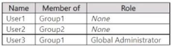 Your company has an Azure AD tenant that contains the users shown in the following table.