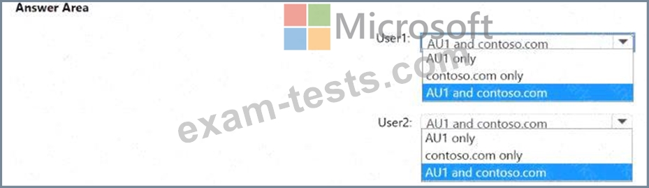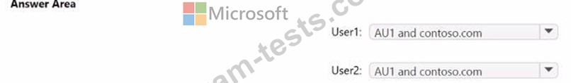 You have a Microsoft Entra tenant named contoso.com that contains an administrative unit named AU1 and two users named User1 and User2. User1 is a member of AU1.