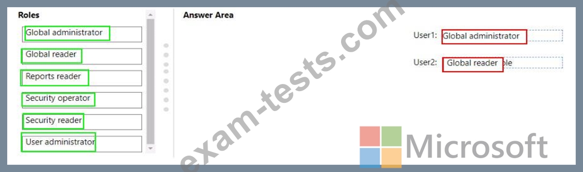 Which role should you assign to each user? To answer, drag the appropriate roles to the correct users. Each role may be used once, more than once, or not at all. You may need to drag the split bar between panes or scroll to view content NOTE: Each correct selection is worth one point.