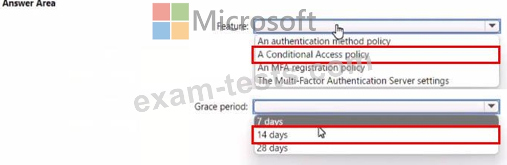 Which feature should you use, and how long before the users must complete the registration? To answer, select the appropriate options in the answer area.