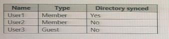 You have an Azure Active Directory (Azure AD) tenant that contains the users shown in the following table.