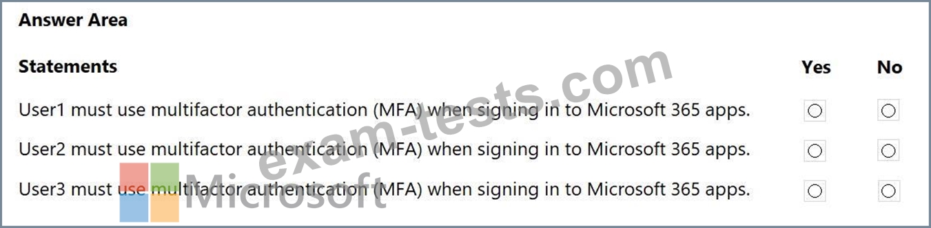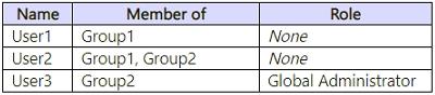 You have a Microsoft 365 E5 subscription that contains two groups named Group1 and Group2 and the users shown in the following table.