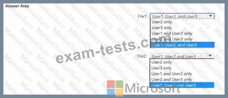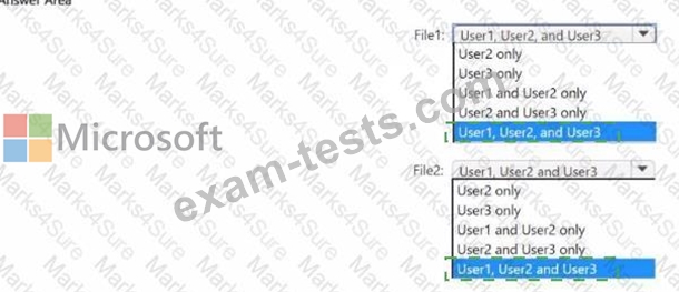 Which users can read File1, and which users can read File2? To answer, select the appropriate options in the answer area. NOTE; Each correct selection is worth one point.