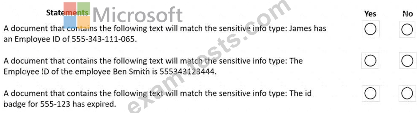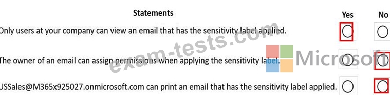 For each of the following statements, select Yes if statement is true. Otherwise, select No NOTE: Each correct selection is worth one point.