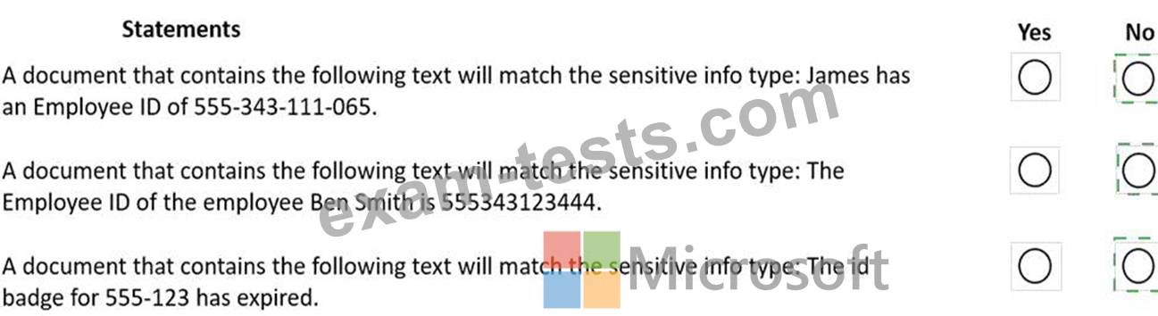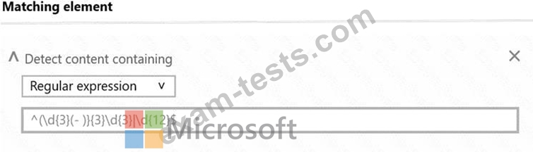 You create a new custom sensitive info type that has the matching element shown in the following exhibit.