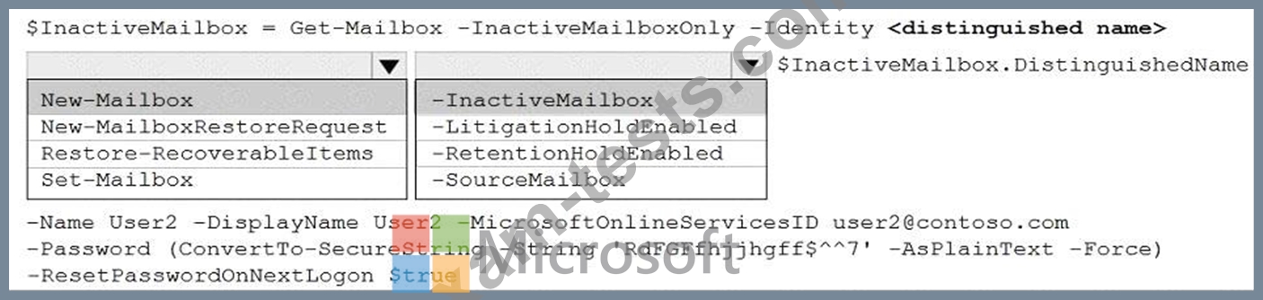 How should you complete the PowerShell command? To answer, select the appropriate options in the answer area.