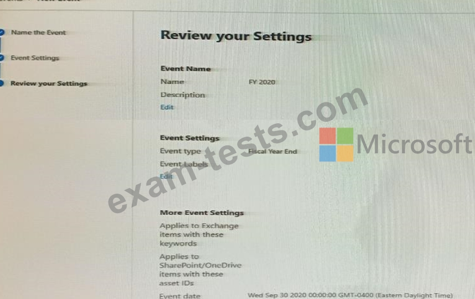 On December 1. 2020. you create the event shown in the Event exhibit. (Click the Event tab.):