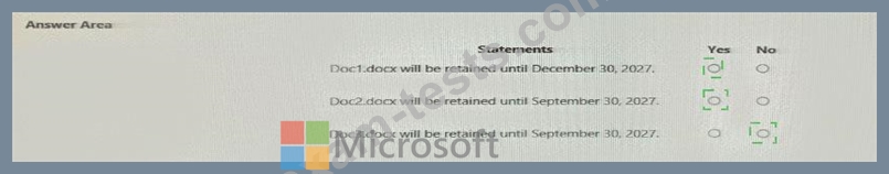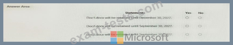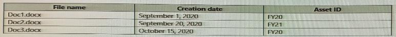 Users apply the retention label policy to files and set the asset ID as shown in the following table.