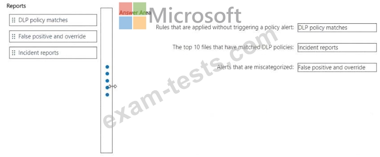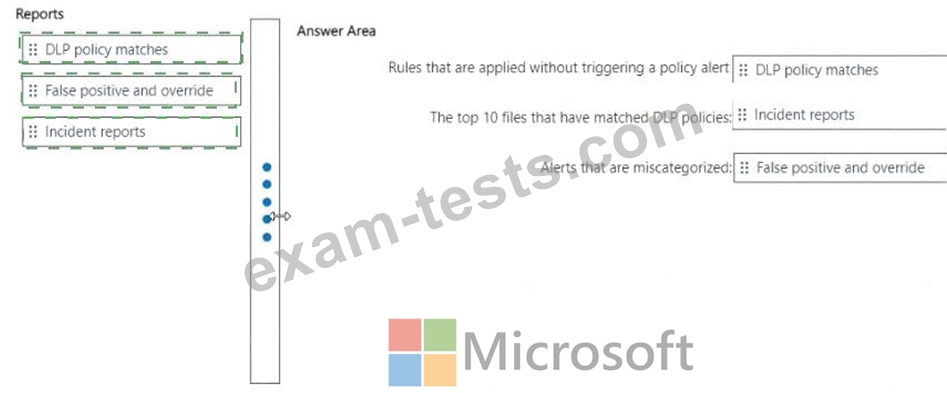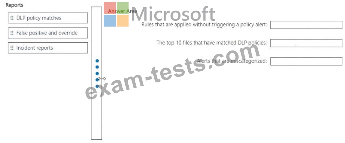 Which report should you use for each requirement? To answer, drag the appropriate reports to the correct requirements. Each report may be used once, more than once, or not at all. You may need to drag the split bar between panes or scroll to view content.