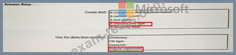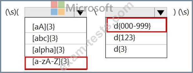 How should you configure the regular expression to detect the content? To answer, select the appropriate options in the answer area.
