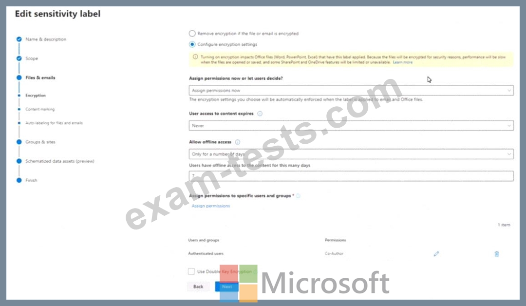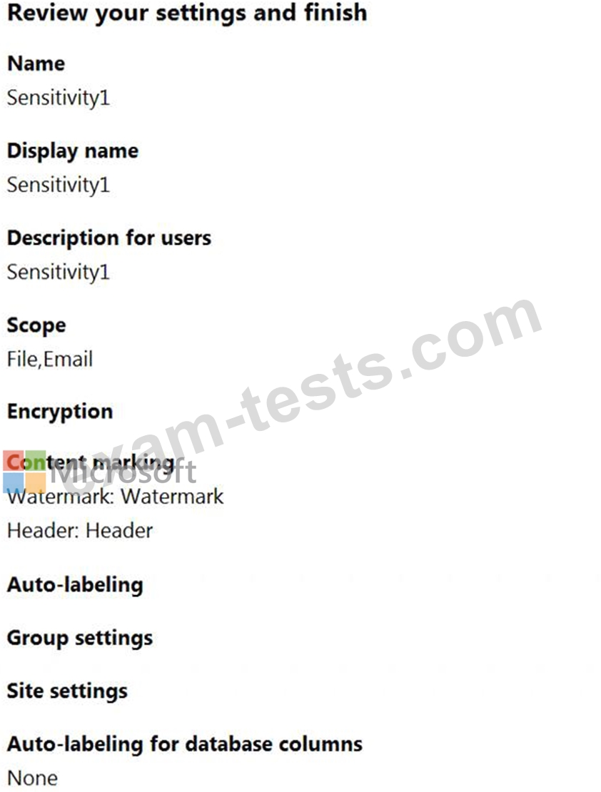 You create a sensitivity label as shown in the Sensitivity Label exhibit.