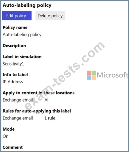 You create an auto-labeling policy as shown in the Auto Labeling Policy exhibit.