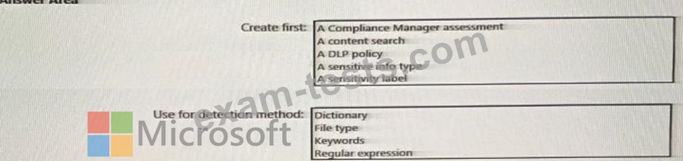 What should you created first, and what should you use for the detection method? To answer, select the appropriate options in the answer area.