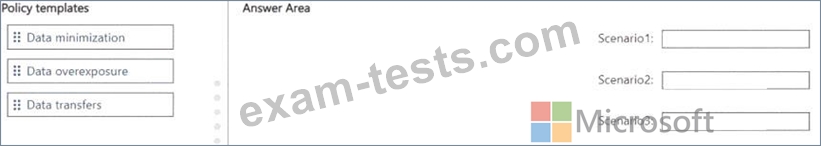 Which policy template should you use for each scenario? To answer, drag the appropriate policy templates to the correct scenarios. Each template may be used once, more than once, or not at all. You may need to drag the split bar between panes or scroll to view content.