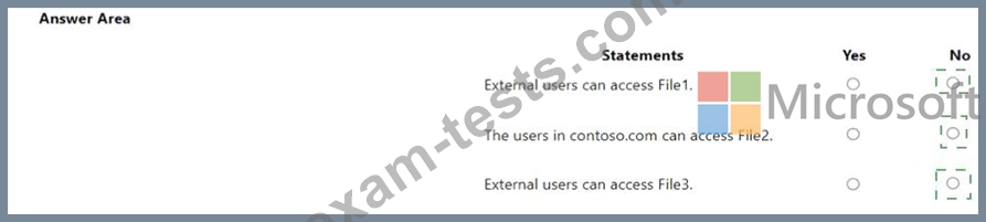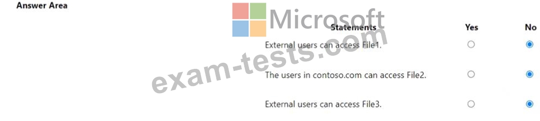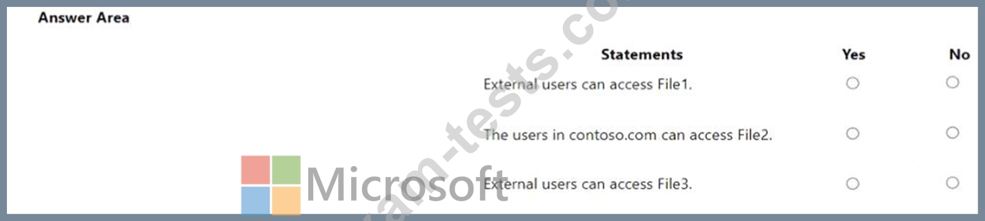 OneDrive stores files that are shared with external users. The files are configured as shown in the following table.