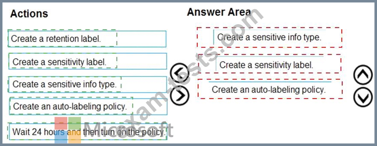 A Microsoft 365 retention label policy is shown in the Label Policy exhibit.