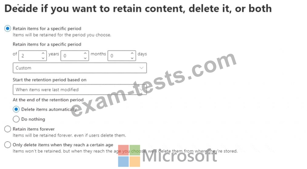 You are creating a retention policy named Retention1 as shown in the exhibit. (Click the Exhibit tab.)