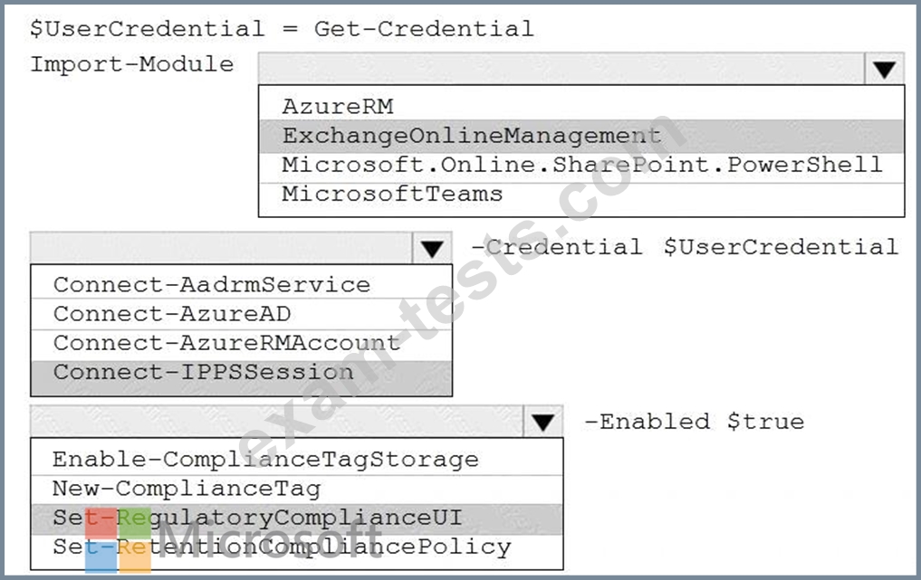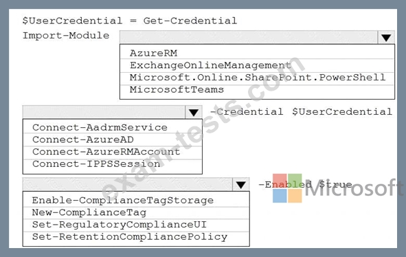 How should you complete the PowerShell script? To answer, select the appropriate options in the answer area.