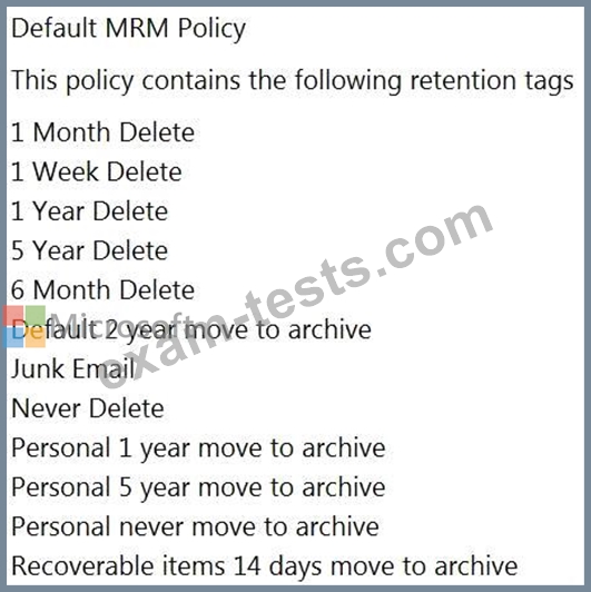 The Default MRM Policy is shown in the MRM exhibit.