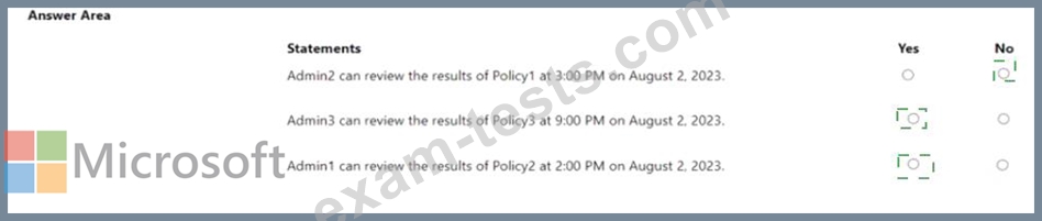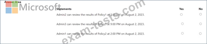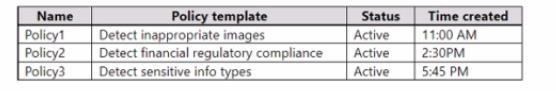 On August 1, 2023, you apply the communication compliance policies shown in the following table.