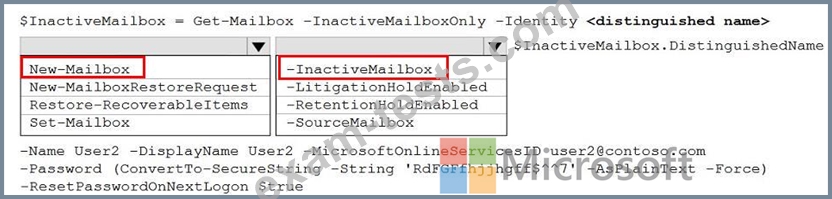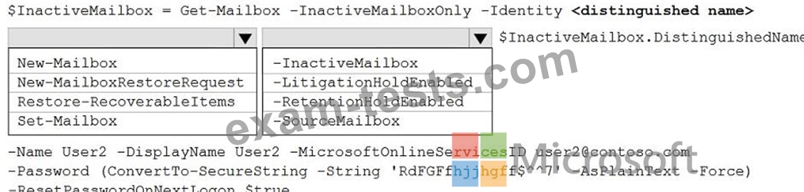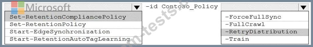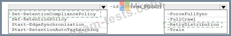 How should you complete the PowerShell command? To answer, select the appropriate options in the answer area.